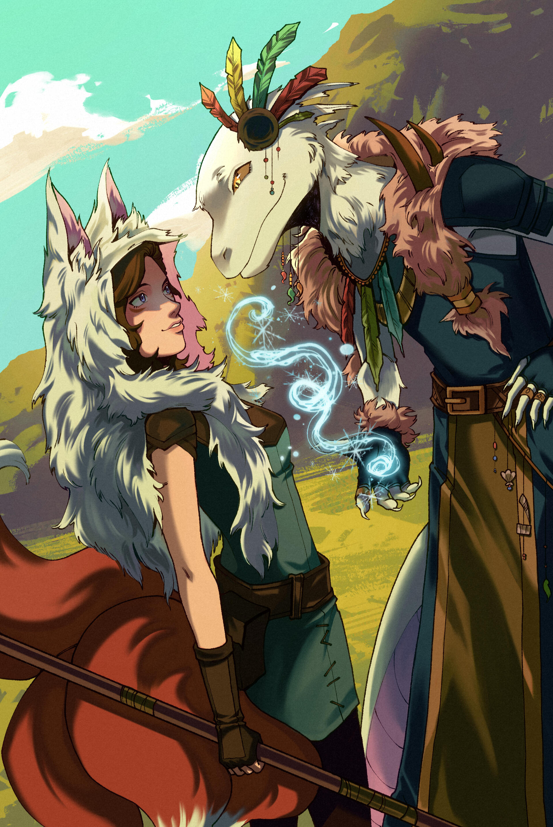 Deryli Rustmane dreams of following in the footsteps of his father, Lepus Rustmane, Runa's top magic scholar and guardian of one of the legendary Keys of Fate. His plans for the future change, however, when Lepus vanishes in the wake of a magical accident - leaving behind the mystery of his missing key, the Key of Seasons, and a national crisis for the floating Kingdom of Androvea, which cannot stay suspended without it.Deryli sets off with his best friend and prince of Androvea, Philippe, on a journey to discover the whereabouts of Lepus and the Key of Seasons before Androvea falls from the sky - but their efforts will unknowingly entangle them in the plans of figures with greater, more sinister intentions for the Keys of Fate and the entire world of Runa.Currently readable as an Early Access series on Tapas! DatMK has been featured by both Tapas and Webtoon CANVAS, both on the homepage and in sitewide collections.
